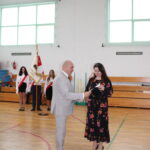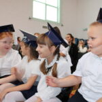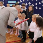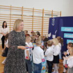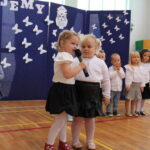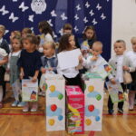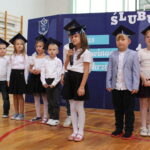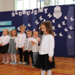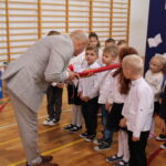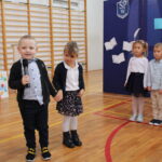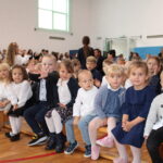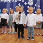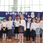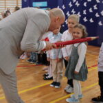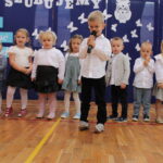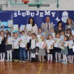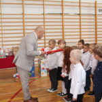 Po przemówieniach nadszedł czas na występy , ślubowanie i pasowanie. To był bardzo ważny moment dla przedszkolaków i dla pierwszoklasistów, którzy oficjalnie stali się pełnoprawnymi uczniami naszej szkoły. Z ogromną powagą składali ślubowanie, a następnie przyjmowali pasowanie. Wszyscy otrzymali pamiątkowe dyplomy oraz upominek. Pani wójt ufundowała dla wszystkich słodkie czekolady.