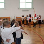 Po wprowadzeniu pocztu sztandarowego odśpiewano Hymn Państwowy – Mazurka Dąbrowskiego. Następnie dyrektor szkoły, Leszek Borkowski powitał wszystkich zgromadzonych – zaproszonych gości, wśród których była p. Katarzyna Jasińska z Urzędu Gminy w Młodzieszynie, p. Bogumił Szymański – przewodniczący Rady Rodziców, rodzice uczniów, nauczyciele, pracownicy administracji i obsługi, uczniów szkoły. Szczególnie ciepło zwrócił się do najmłodszych przedstawicieli, przedszkolaków i pierwszoklasistów, którzy w dniu dzisiejszym złożyli ślubowanie i zostali pasowani na przedszkolaka/ucznia Szkoły Podstawowej im. płk Ludwika Głowackiego w Janowie. Chwilą ciszy uczczono pamięć p. Bogusławy Kulińskiej, której po raz pierwszy od początku istnienia szkoły zabrakło w gronie społeczności szkolnej.