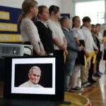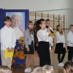 30 października spotkaliśmy się w sali gimnastycznej, aby w wierszu i piosence wspominać postać wielkiego Polaka, papieża – Jana Pawła II. W tym dniu był z nami proboszcz giżyckiej parafii, ks. Bogumił Bartlewski. Część artystyczną przygotowali uczniowie klasy IV i VI pod kierunkiem p. Sylwii Błaszczak.