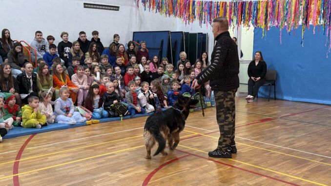 Największą atrakcją było oczywiście bezpośrednie spotkanie z psami – uczniowie mogli je pogłaskać, obserwować ich zachowanie oraz zobaczyć, jak reagują na różne komendy. Spotkanie dostarczyło wszystkim mnóstwo radości oraz cennej wiedzy, która z pewnością przyda się na co dzień 🐶❄️