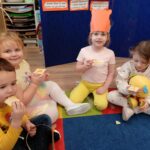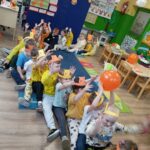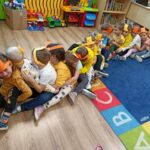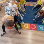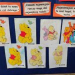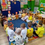 Dnia 14 stycznia w oddziałach przedszkolnych obchodzony był Dzień Kubusia Puchatka🧸🍯. Z tej okazji dzieci wzięły udział w wesołych zabawach ruchowych🤸🏃⛹️, zabawach przy muzyce oraz z uwagą wysłuchały opowiadania o Kubusiu i jego przyjaciołach📖. Przedszkolaki uczestniczyły także w rozwiazywaniu zagadek nawiązujących do postaci bajkowych. Następnie dzieci kolorowały🖍️ rysunek Kubusia. Nie zabrakło również dla chętnych degustacji słodkiego przysmaku Kubusia – miodu🍯🍯🍯. Wszystkie dzieci bardzo chętnie i z dużym zaangażowaniem uczestniczyły we wszystkich zabawach❤️🙂